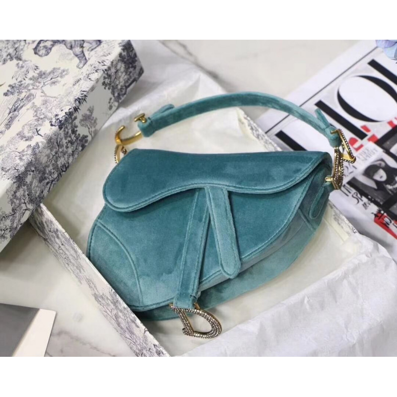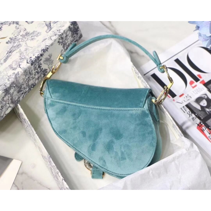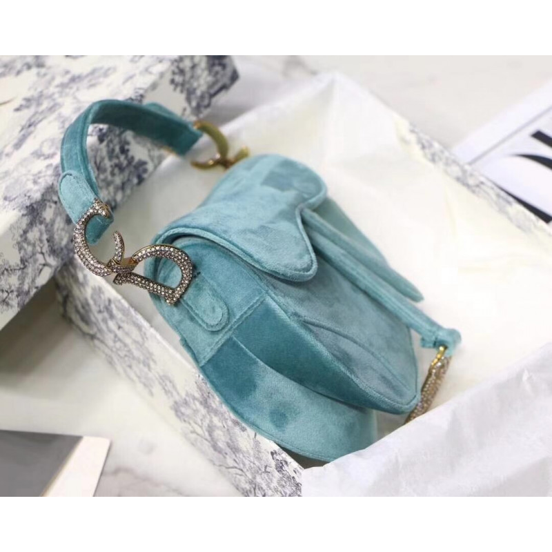 Christian Dior Saddle 20cm skuldertaske med krystaller fløjl M8044