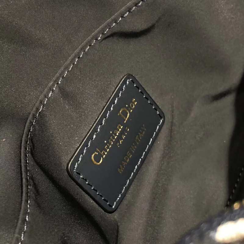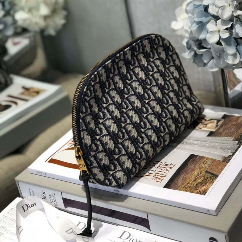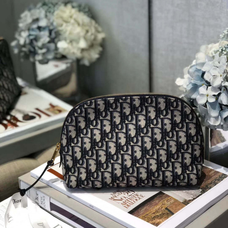 Stor skønhedspose i blåt Dior skrå jacquard lærred med blå kalveskindlæderdetaljer.