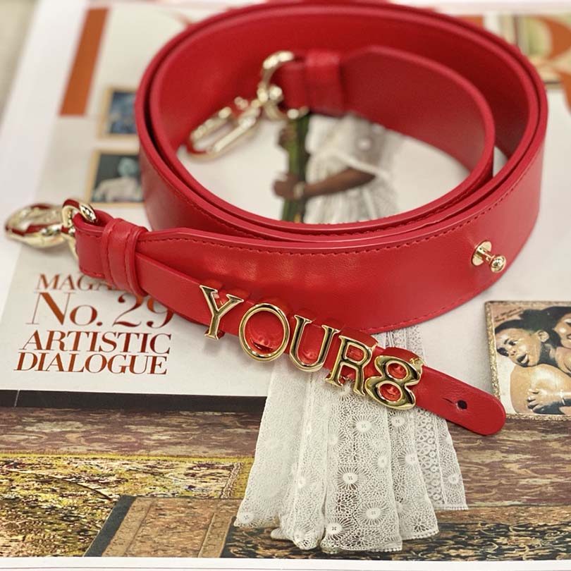 Bred, justerbar og tilpasselig skulderrem med tre tonale stifter inkluderet. Skulderremmen kan rumme op til seks stifter i alt Tasken kan parres med forskellige broderede stropper