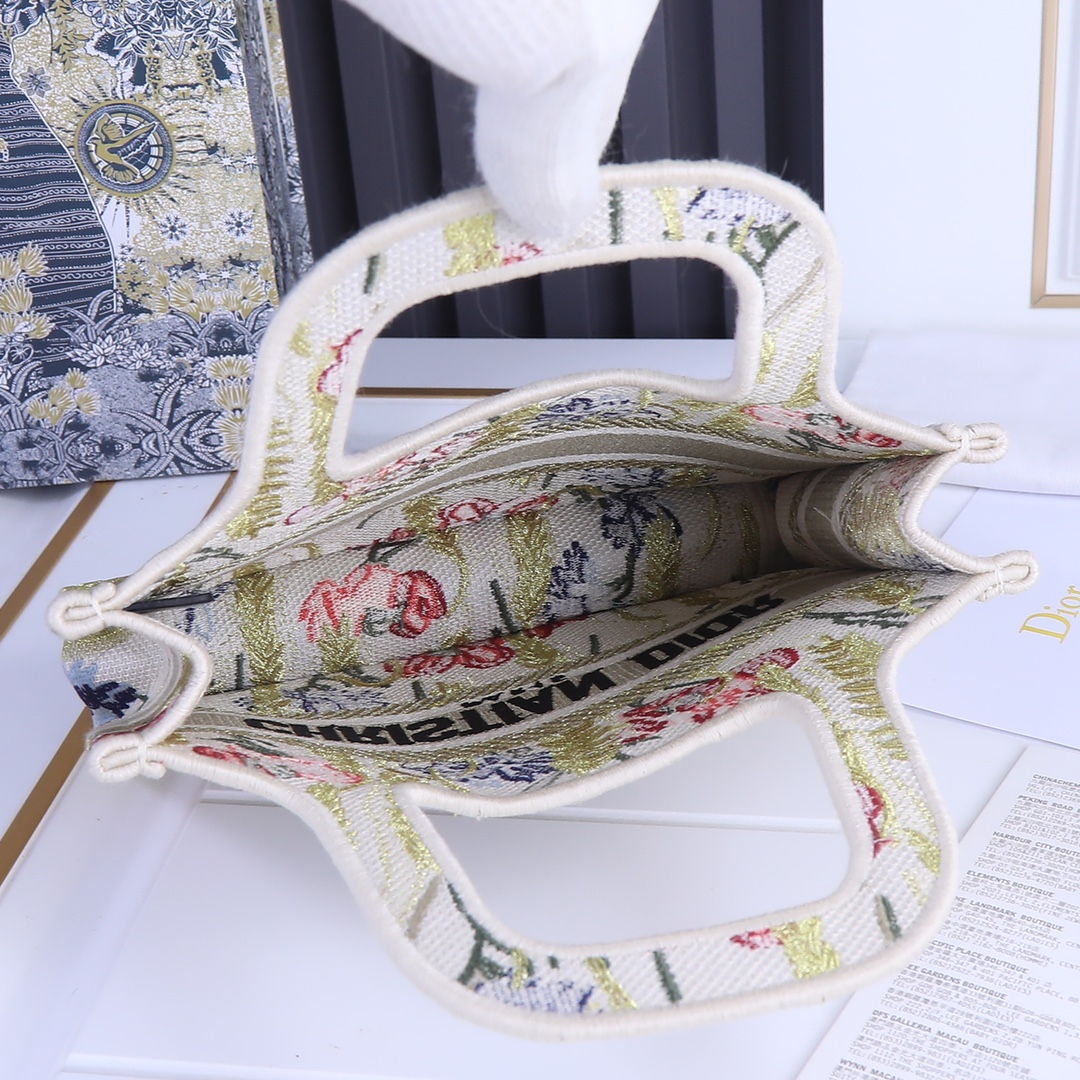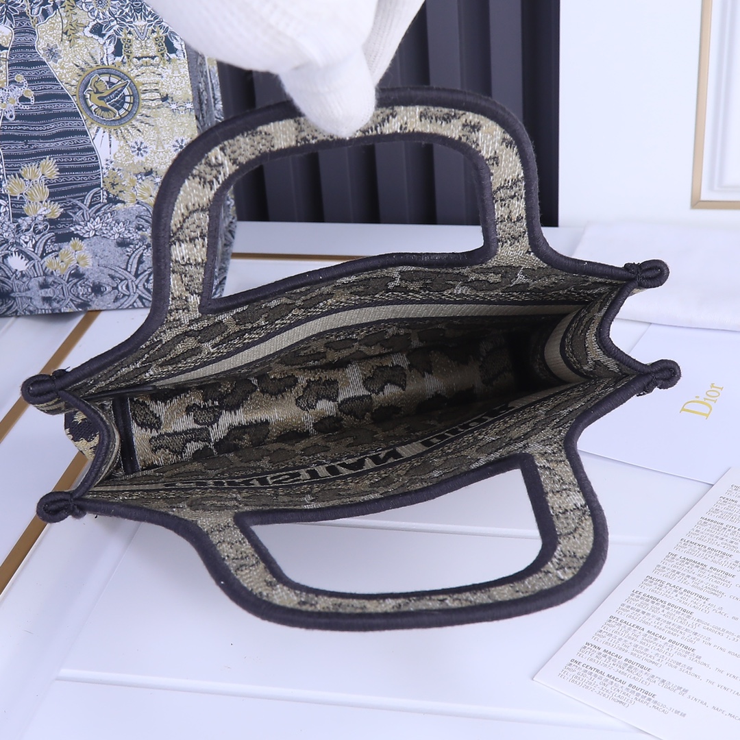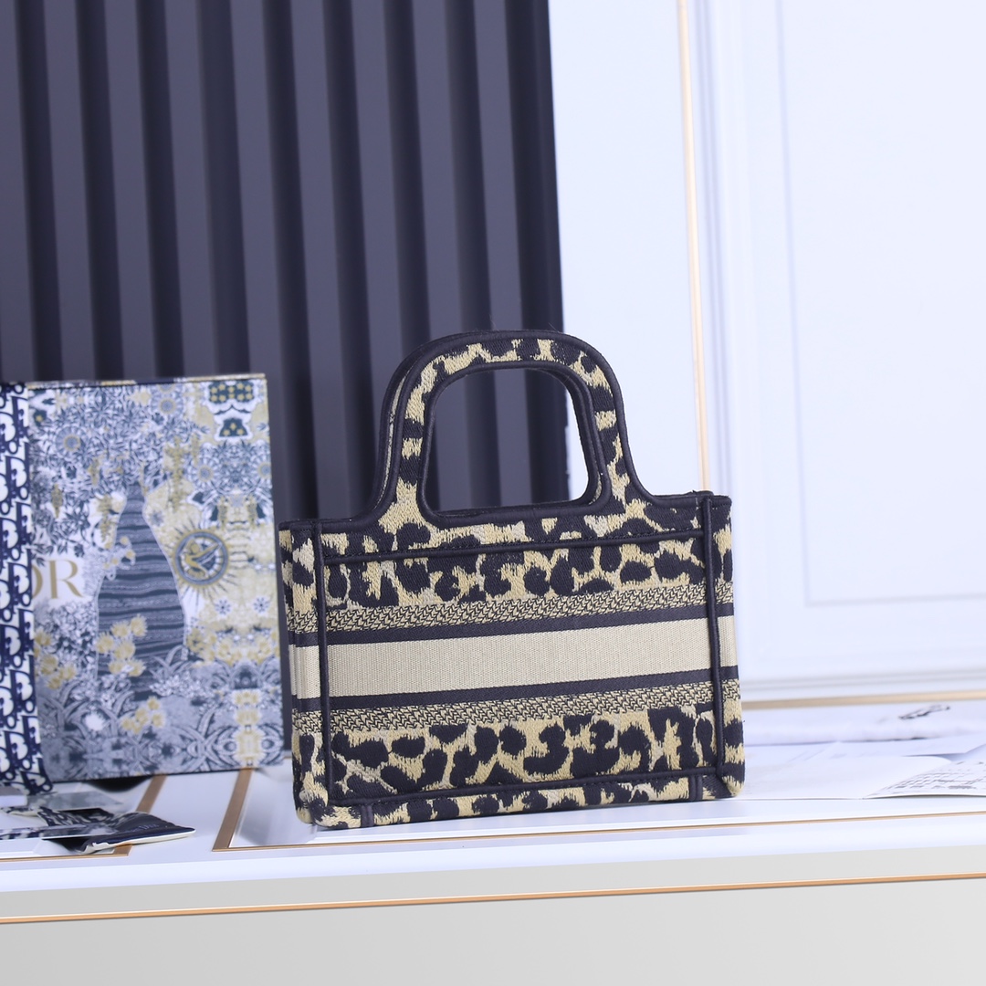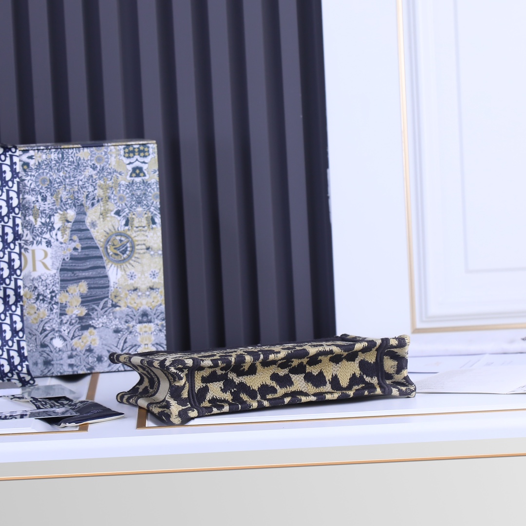 Dior Book Tote, som forestillet af Maria Grazia Chiuri, er blevet et væsentligt punkt i Dior -æstetikken. Silhuetten er fuldt broderet med det beige flerfarvede mizza -motiv, en hæfteklamme i samlingen og inspireret af et leopardmønster fra husarkiverne. Et godt eksempel på Diors savoir-faire, miniaturposen kan bæres for hånd og kan parres med andre Mizza-kreationer.