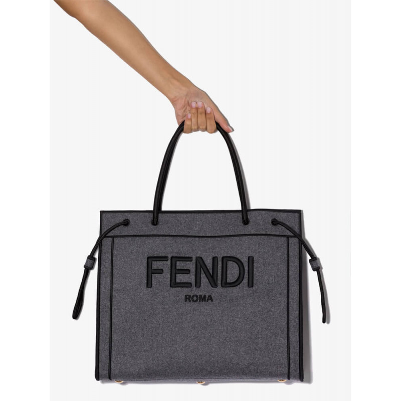 Denne grå Fendi Roma -lille totalpose er udformet i Italien med melange -filt -flanel og accenteret med sorte trimmer. Denne stil har et broderet logo på tværs af fronten og har tophåndtag og trækkordsider. Napoli og Firenze er smukke, men har du set denne Fendi Roma -taske nu, der er Magnifico.