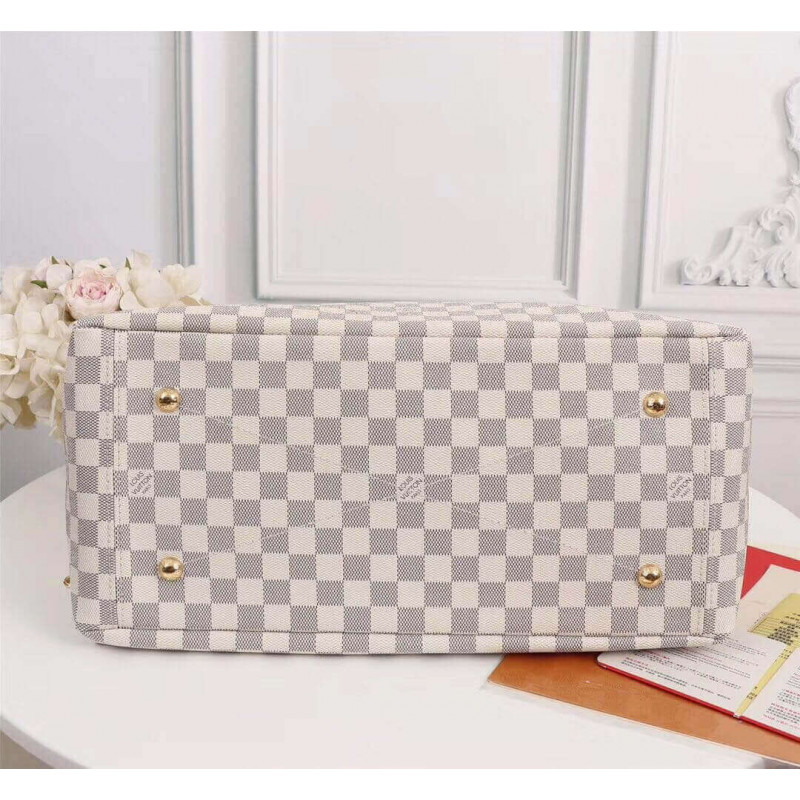 Den kunstneriske MM ser frisk og feminin ud i smidig Damier Azur lærred. Pyntet med skinnende gylden messing og en eleg]] 6 indvendige patch-lommer, 2 store nok til at rumme en zippy tegnebog