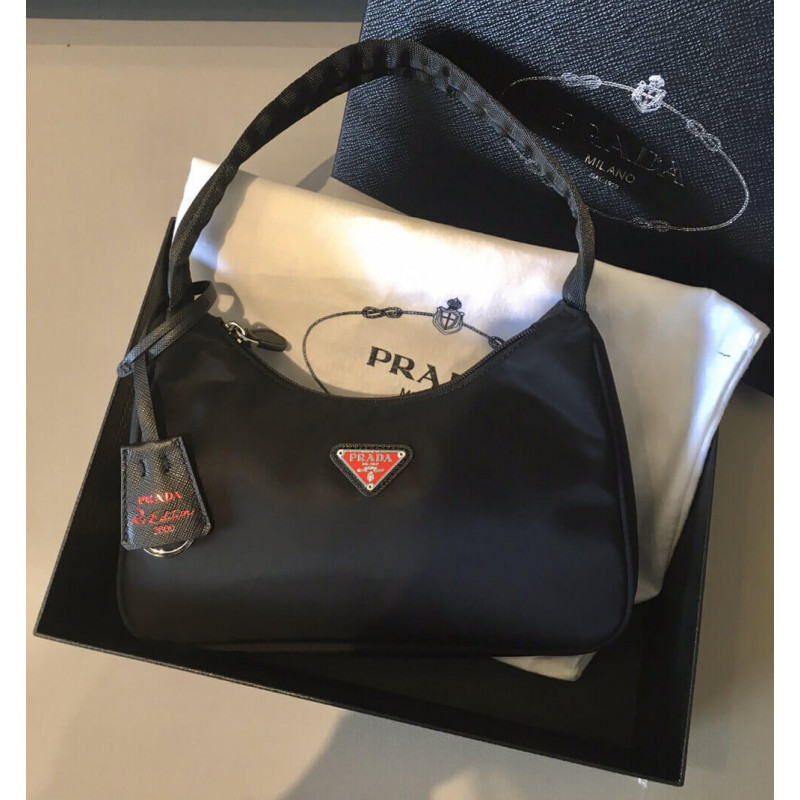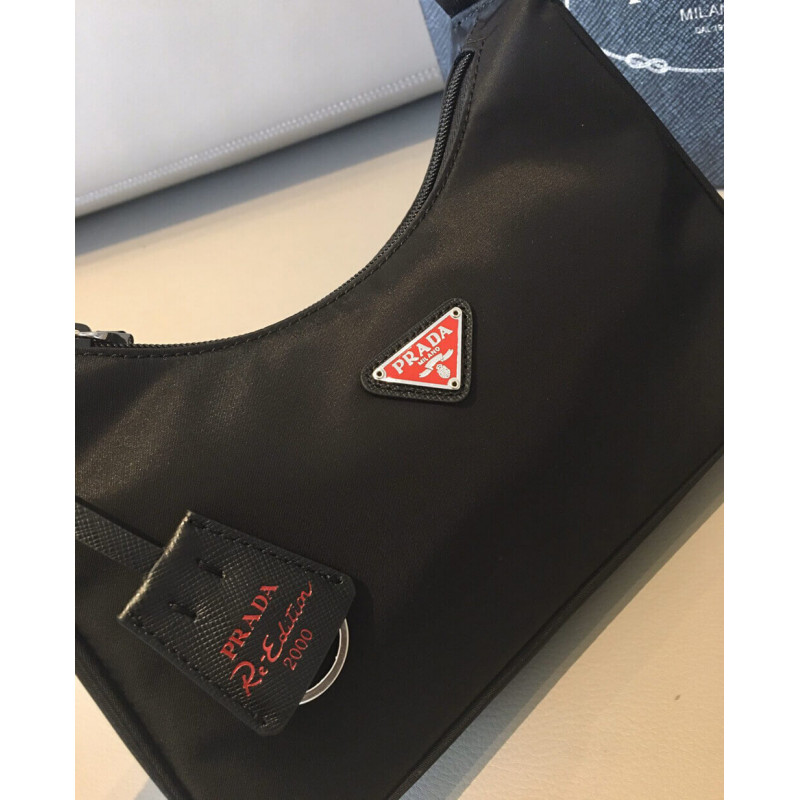 aftagelig prada re-edition 2000 saffiano lædernavn tag med nøglering