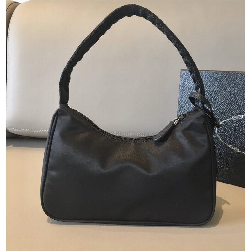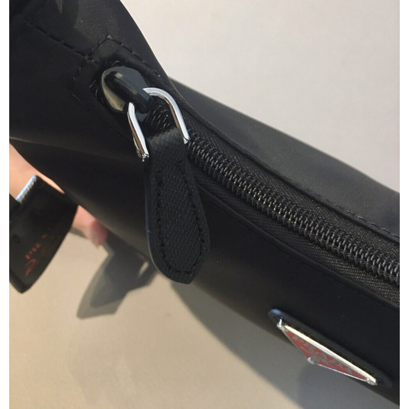 Praktisk og feminin er Nylon Mini -tasken dekoreret med ikonisk Saffiano læderbeklædning. Det har en moderne blanding af materialer.